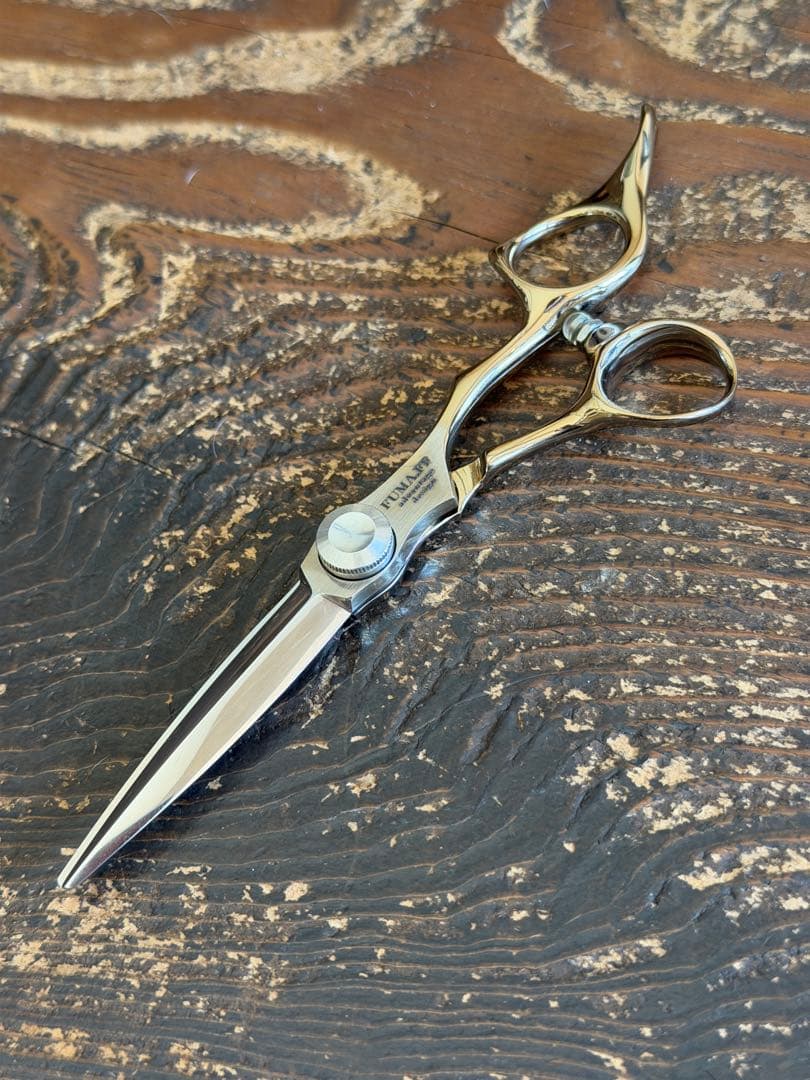 美容師用カットシザーアルファシザーさんのシザーです。定価100100円(チタンコーティング済み)サイズ 6.0インチ オフセット静刃のみピンクゴールドのチタンコーティングをしています。シルバーとピンクのツートーンがかっこいいです。親指のゴムリング、黒のものに新しく取り替えました過去に4回研いでいます。すぐにお使いいただけると思います。落としたりはなく、状態も綺麗で良いと思います。写真にあるように刻印ありますので気にされない方はお得になっていますのでぜひご検討ください。プラスチックのハサミケースに入れて、プチプチなどで厚めにしっかり保護して発送致します。シザーの調節ネジも付属しています。11月末に研ぎにだしました。それから数回使用しましたが保管しております。